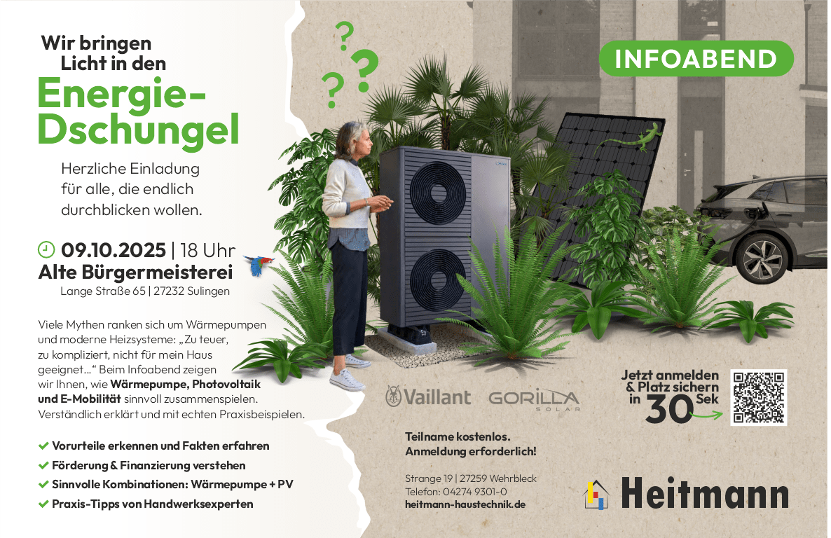 Erfahren Sie alles über Photovoltaik, Wärmepumpen und Energiespeicher – Ihr Rundum-Paket für ein energieeffizientes Zuhause. Unsere Experten beantworten alle Fragen und zeigen Ihnen den Weg in eine nachhaltige Zukunft.